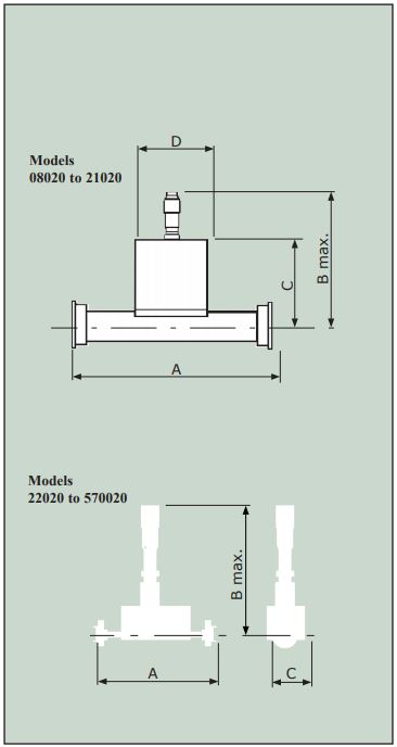 Models 22020 – 570020 have a vane introduced through a slot in the centre of the broad wall.