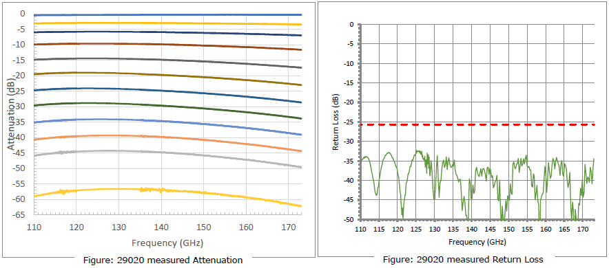 - Excellent attenuation flatness +/-10%* across whole waveguide band