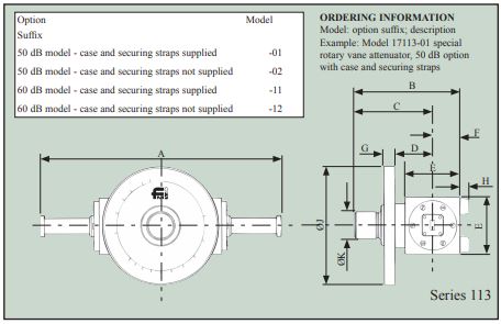 Models in the range utilise many of the components from the highly regarded precision rotary vane attenuators produced by the company. Each instrument features a direct reading scale calibrated in 1 dB increments from 0 dB to 50 dB. The attenuation accuracy is 0.5 dB over the full waveguide frequency band. Models with an extended attenuation range up to 60 dB are available to special order.